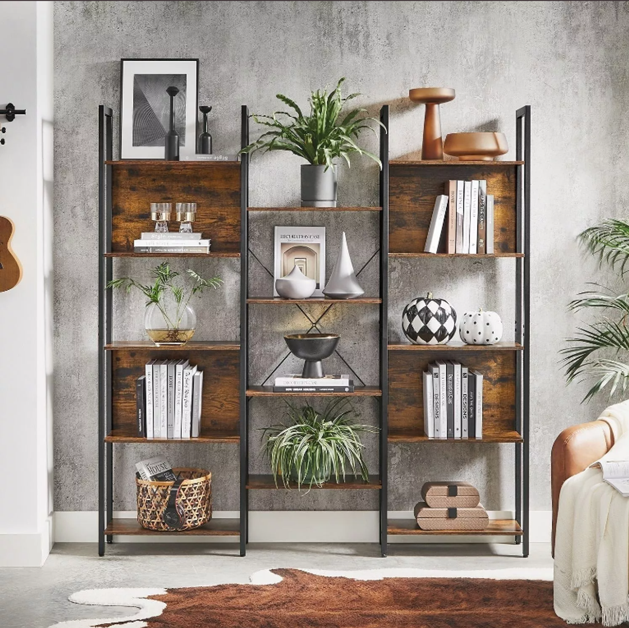 Dieses Homestoreking Leiter Bücherregal bietet nicht nur eine praktische und stilvolle Möglichkeit, Ihre Bücher und Dekorationsgegenstände zu präsentieren, sondern ist auch ein Blickfang in jedem Wohnzimmer, Arbeitszimmer oder Büro. Mit seinem robusten Metallrahmen und den insgesamt 14 Regalen bietet dieses Bücherregal ausreichend Platz für Ihre persönlichen Gegenstände. Das industrielle Design in den Farben Vintage Braun und Schwarz verleiht jedem Raum ein modernes und zeitloses Flair.