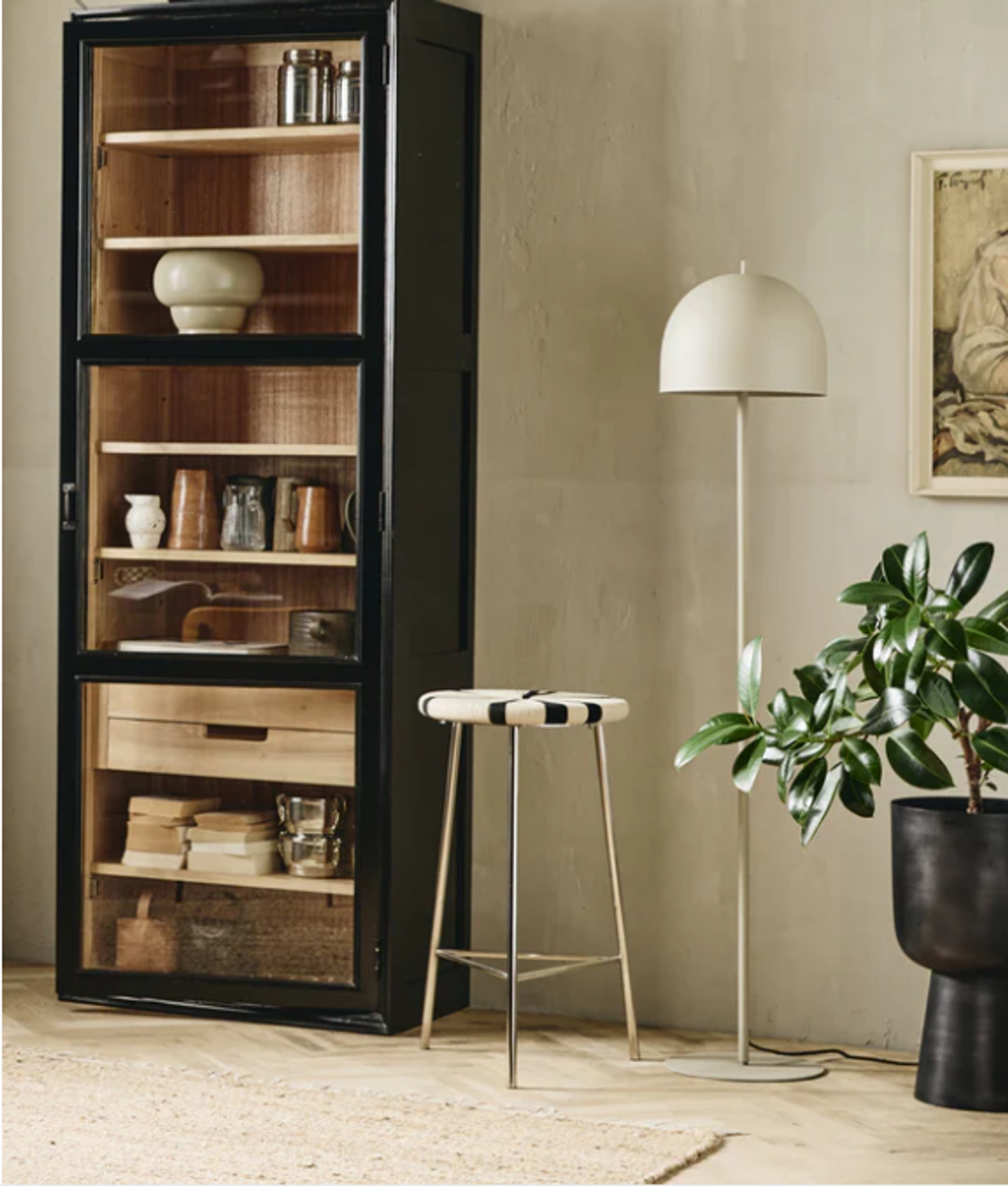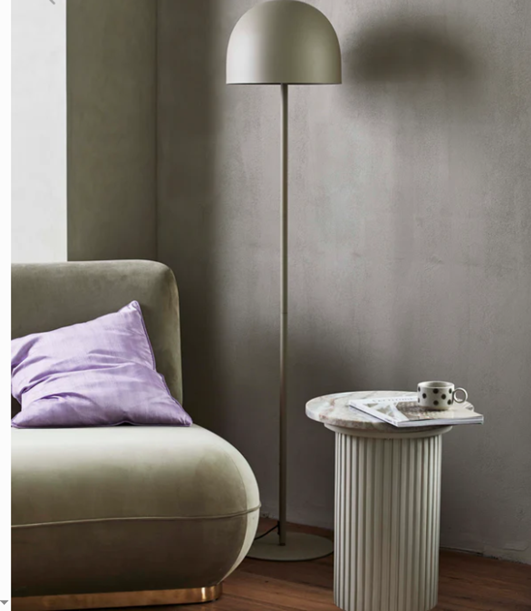 Diese klassische Stehlampe aus Eisen mit mattem Beige-Finish ist ein zeitloses Stück für Ihr Zuhause. Der weiße Lampenschirm sorgt für ein angenehmes Licht und die 3,5 Meter lange Stoffkordel bietet Flexibilität bei der Platzierung.