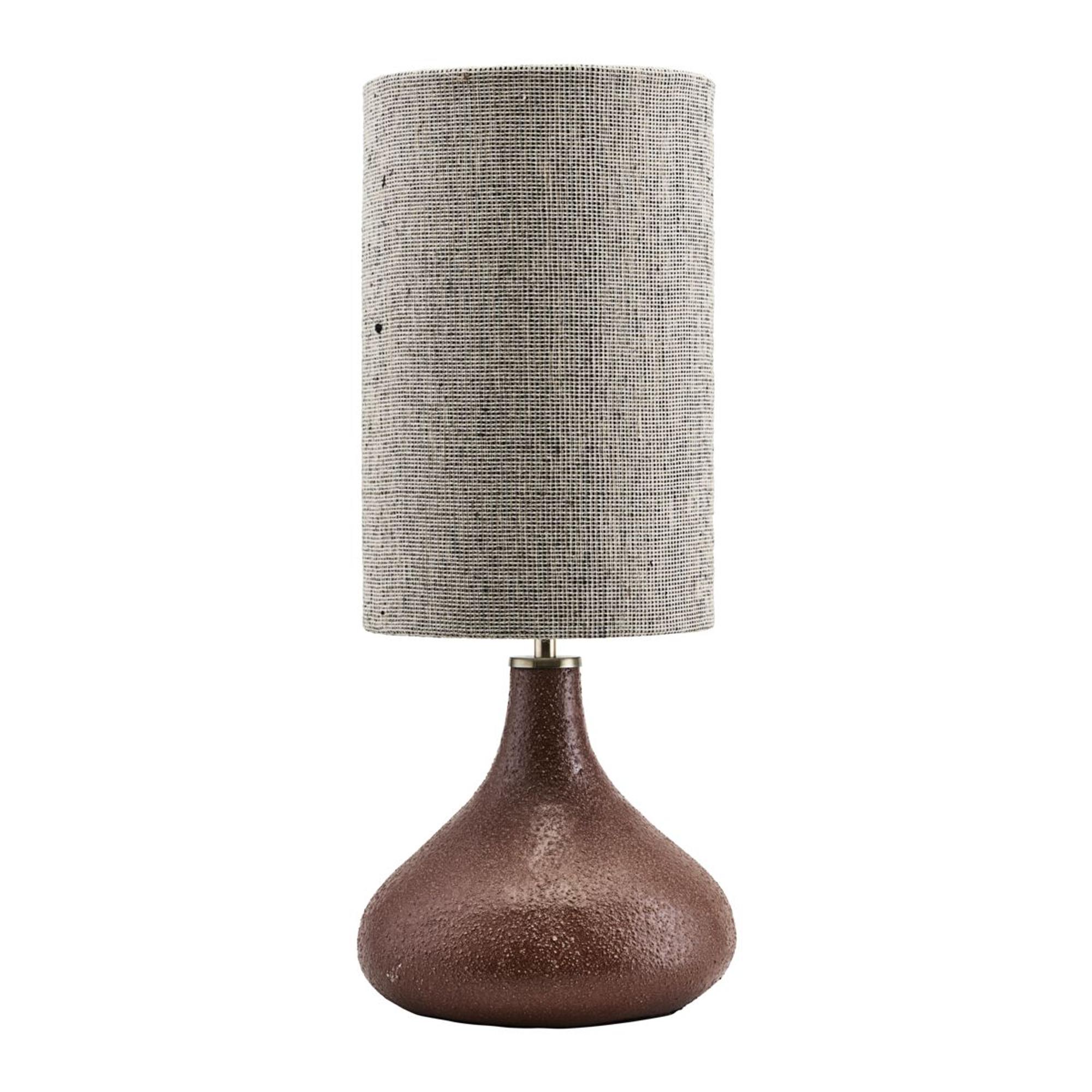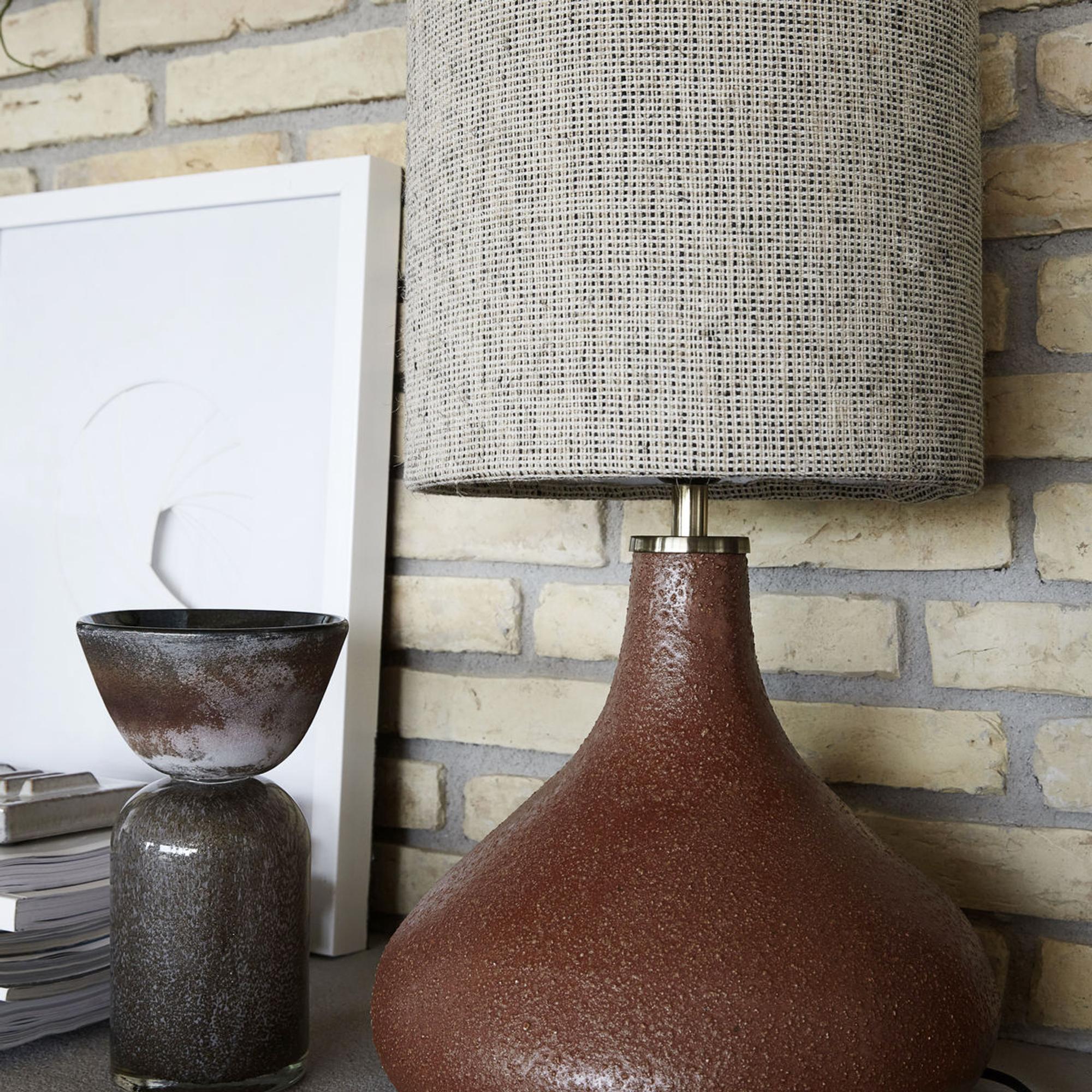 Die Tischleuchte hat einen rustikalen, erdig-roten Fuß. Erstellen Sie Ihren eigenen persönlichen Look mit einem Lampenschirm Ihrer eigenen Wahl.